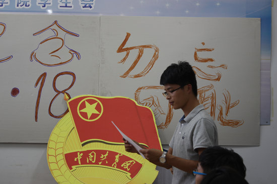 当年的硝烟弥漫化作了今日的静默无言。会议开始,气氛庄严而沉重,全体向在事变中遇难同胞和为国捐躯的英烈致哀。随后,纪孟含老师带着参加座谈会的同学们首先回顾了八十四年前,九一八事变的那段悲惨历史,提醒在座的每一个人都要勿忘国耻,警钟长鸣。接着,学生代表周义涛和韩加瑞通过他们自己查询的资料和收集的同学们对九一八的认识和看法先后向我们做了激动人心的发言。在他们的发言过程中,我们仿佛看到了3000万东北同胞在此后的14年过着饱受耻辱的亡国奴生活,无数的英烈在斗争中倒下。这铁一般的事实,需要我们始终铭记。最后,纪老师做了整个座谈会进行了总结,并对同学们提出希望和要求,希望我们化悲愤为动力,成长为优秀的、为中华崛起而不断奋斗的当代大学生。