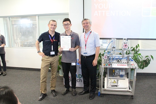 8月30日下午,博世汽车技术服务(中国)有限公司与南京工业职业技术学院联合培养的首届机电专业现代学徒制试点班毕业典礼在博世公司隆重举行,南工院总督学卢兵、博世公司厂长马方凯(Meyer Frank)、南工院机械工程学院院长王晓勇、机械工程学院教师代表、部分学生家长代表和博世公司学徒制全体学员出席了典礼,博世公司学徒培训经理芮红艳主持毕业典礼。