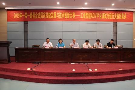 8月24日下午,2019“一带一路”暨金砖国家技能发展与技术创新大赛工业智能AGV平台装调大赛在南京工业职业技术学院比赛场地鸣锣开赛。本次大赛由中国政府及金砖国家支持参与、金砖国家工商理事会主办,南京工业职业技术学院,昆山巨林科教实业有限公司承办。本次比赛吸引来自全国16所本、专科院校报名参加,共派出17支参赛队。