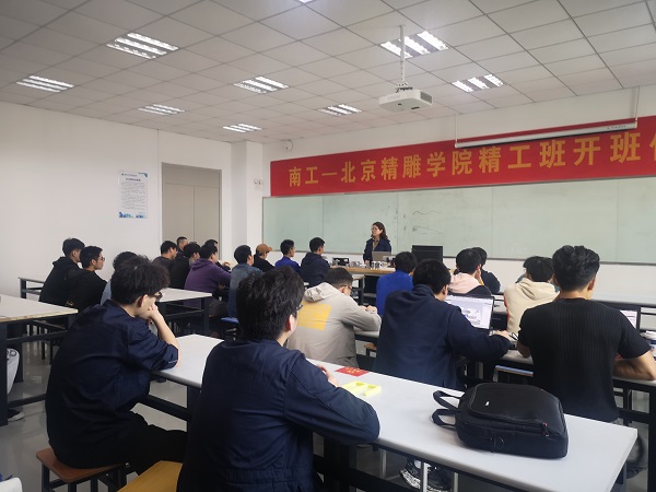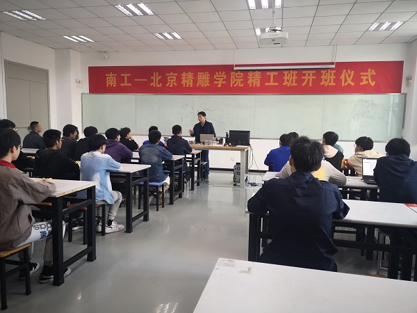 11月9日,南工-北京精雕学院精工班开班仪式在北京精雕学院G2-102教室举行。机械工程学院副院长杨海波,北京精雕科技集团有限公司南京分公司总经理、南工-北京精雕学院院长梁彦松,以及精工班全体指导老师和同学参加了此次开班仪式。