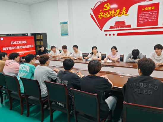为全面、客观、准确研判我院学生思想动态,深入了解学生关注的各类热点问题和诉求,进一步提高大学生思想政治教育工作的针对性、实效性和科学性,机械工程学院于9月26日下午在G2-212会议室组织召开了2024年秋季学期学生思想动态座谈会,学院党委副书记、副院长赵颖、辅导员和学生代表参会。
